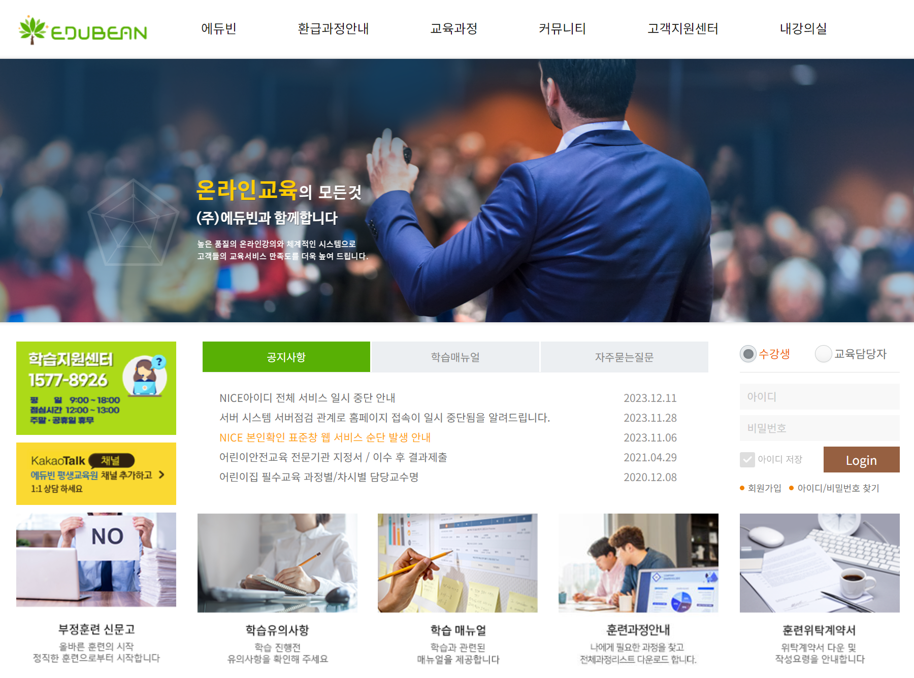 에듀빈 사이트 바로가기 정보입니다. 에듀빈은 고용보험 환급 교육, 온라인 교육센터 에듀빈, 에듀빈평생교육원, 에듀빈 평생교육원을 제공하고 있습니다.