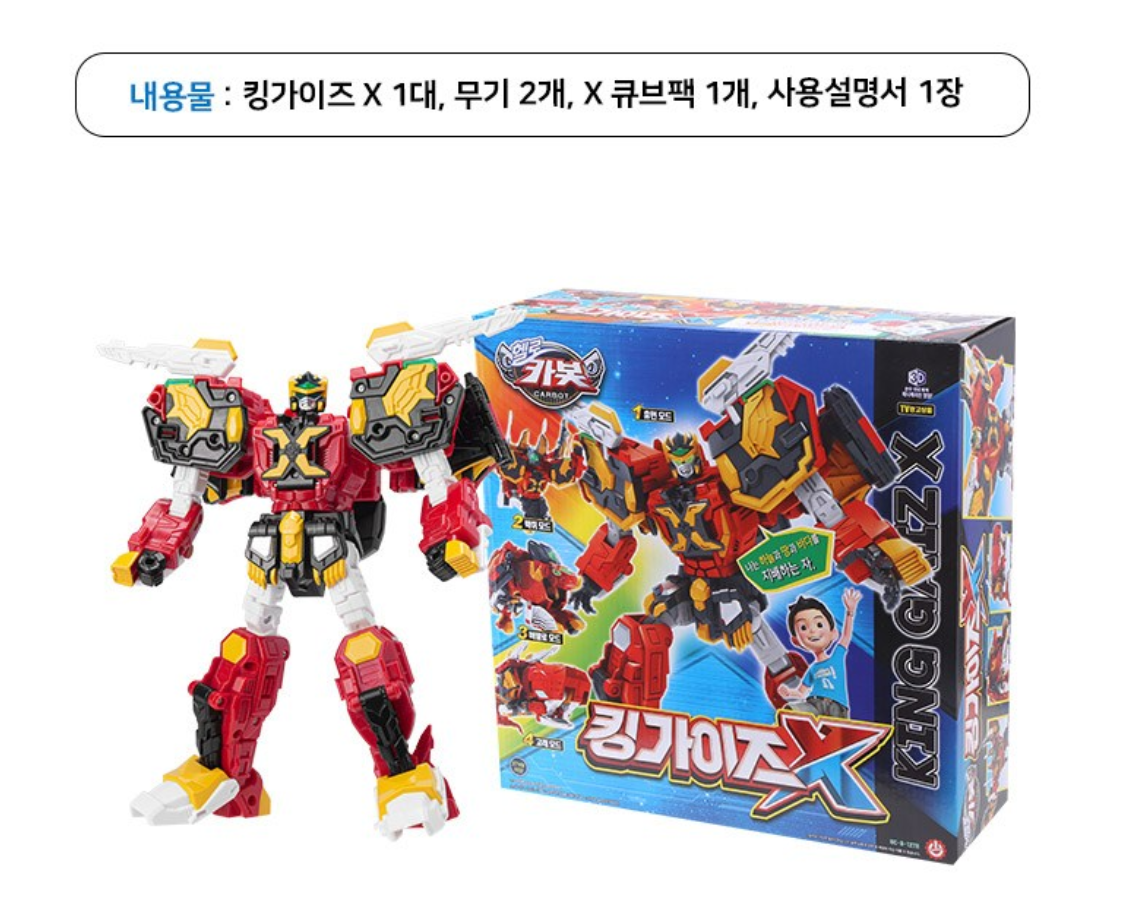남자 아이 생일 선물용으로 헬로우캅소 킹가이즈X를 구입했습니다. 남자아이들이 좋아하는 카봇 만화에 등장하는 로봇입니다.