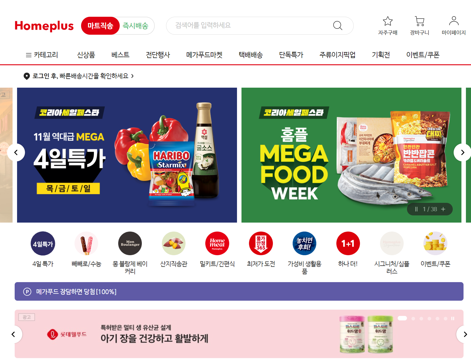 당일배송, 신선한 식품, 그리고 특별한 할인 혜택까지. 온라인으로 마트 장보기를 간편하게, 홈플러스와 함께하세요.