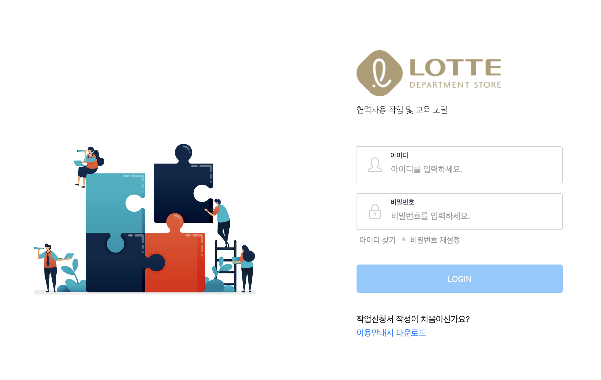 롯데 협력사용 작업 및 교육관리 포탈 홈페이지 바로가기 정보입니다.