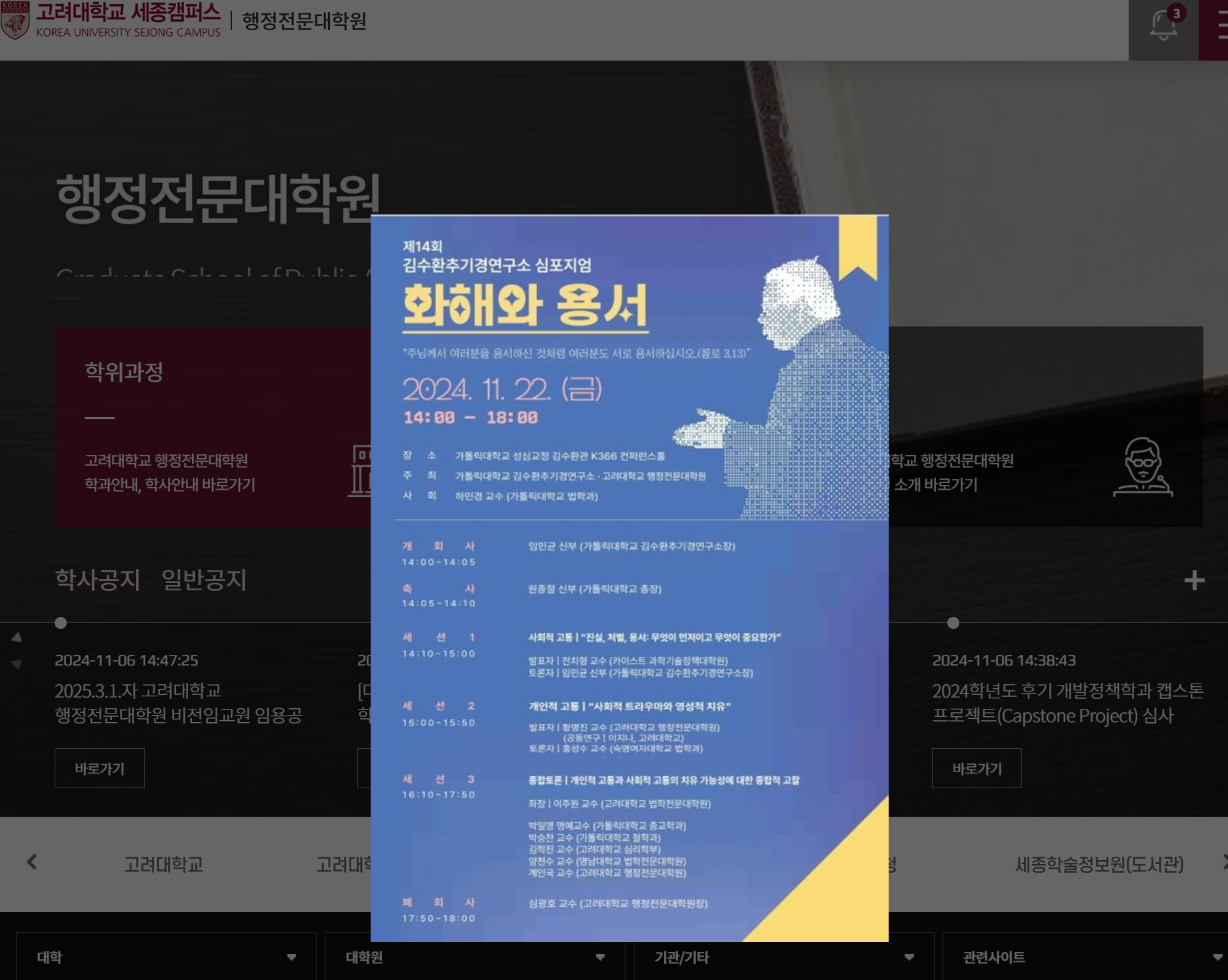 고려대학교 세종캠퍼스 행정전문대학원 홈페이지 바로가기 정보입니다.