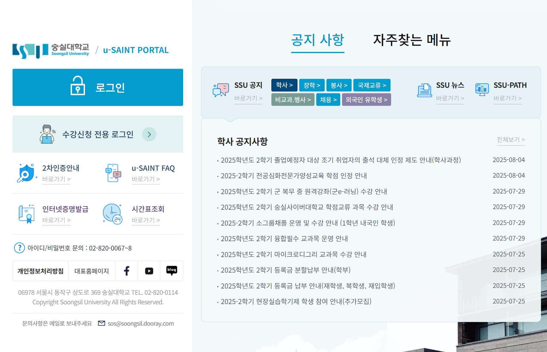 숭실대학교 유세인트 홈페이지 바로가기 정보입니다.