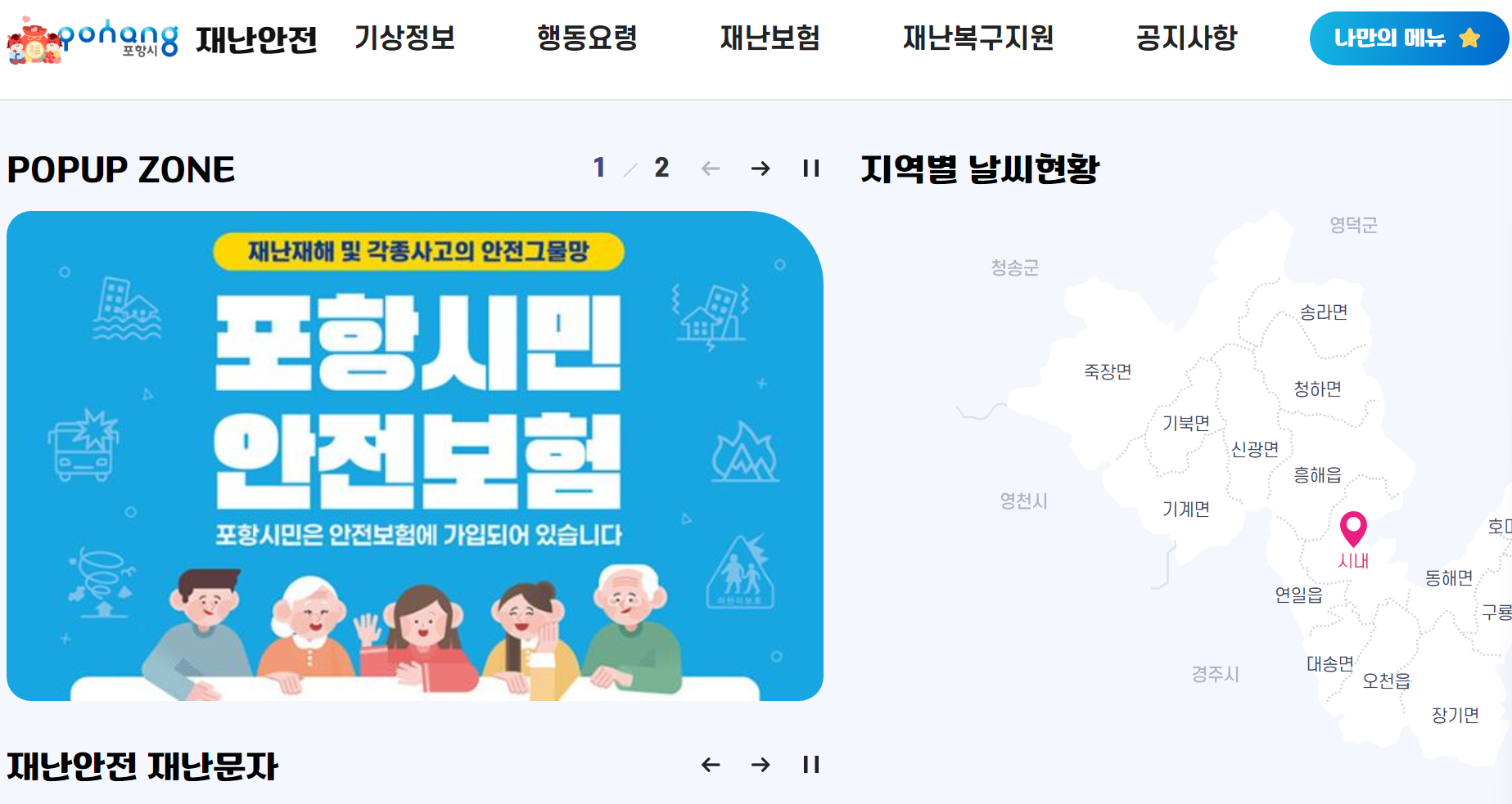 포항시 재난안전대책본부 홈페이지 바로가기 정보입니다.