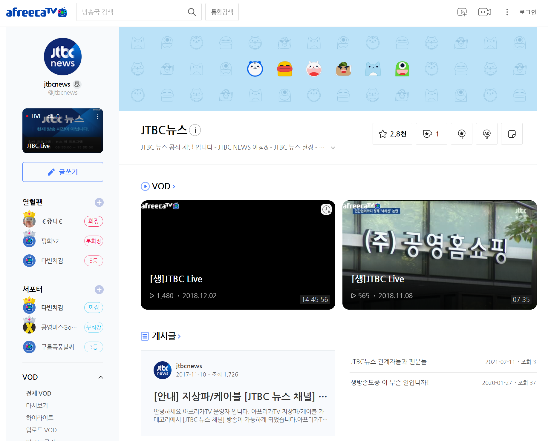 아프리카TV 공식 채널이 아닌 지상파 방송을 송출하는 채널에서도 시청 가능합니다.