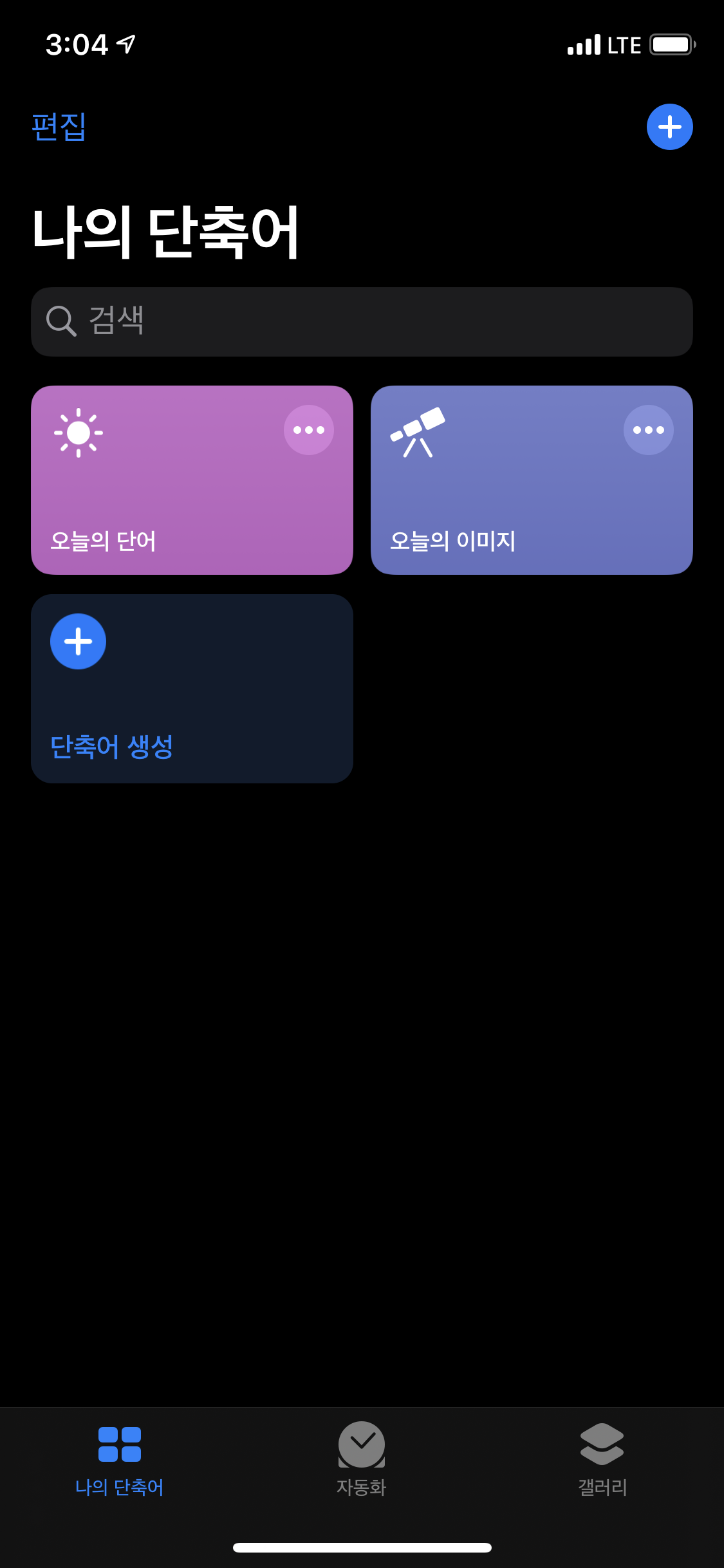 단축어앱을 실행합니다. 하단에 자동화를 선택합니다.