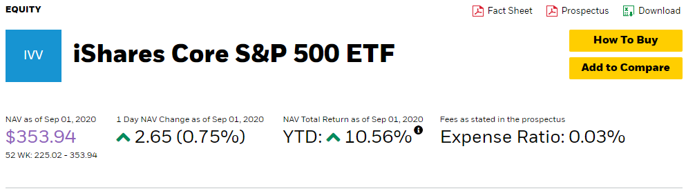 보수율 차이가 남니다. IVV의 연 보수율은 0.03%로 SPY의 0.09%입니다.