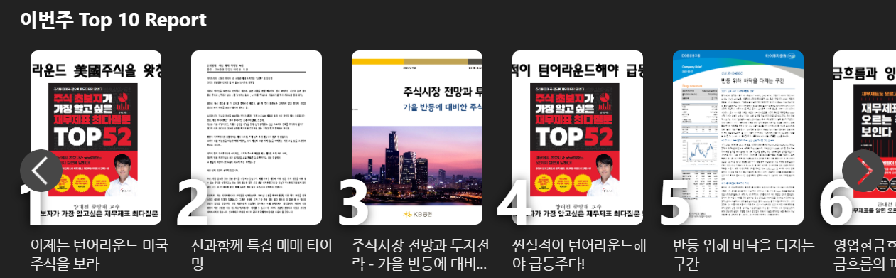 홈페이지가 리뉴얼 되면서 웹 사이트에서 리포트 다운받기가 어려워졌습니다. 익숙한 게시판 형태가 아니라 pdf 뷰어 형태로 변경되었습니다. PC로 해당 경로를 찾아서 pdf 파일을 열면 로컬로 다운로드는 가능합니다. 동선이 편하지는 않습니다. 인기 있는 리포트순으로 정렬되어 있습니다.