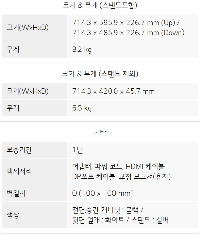 마지막 LG전자 32UN650은 32인치에 4K에 적당한 가격에 제품으로 보입니다.