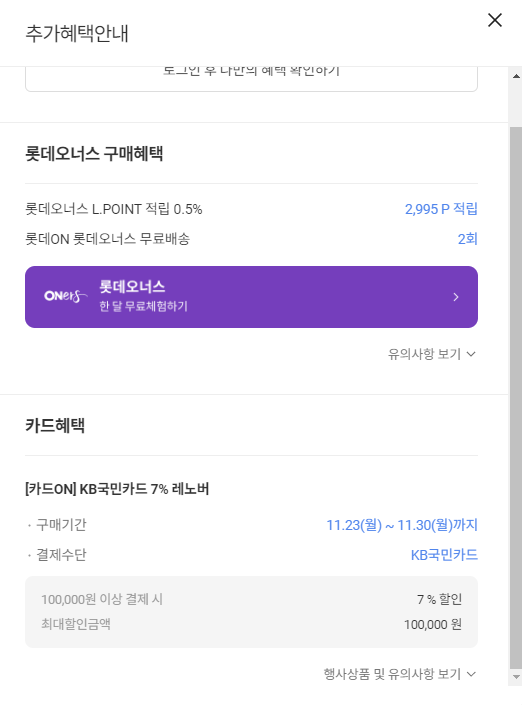 롯데온에서 할인행사를 하고 있습니다. 디지털 데이 10% + KB국민카드 추가 7% 할인 가능합니다. 역대급 할인가라 혹하게 만드네요.